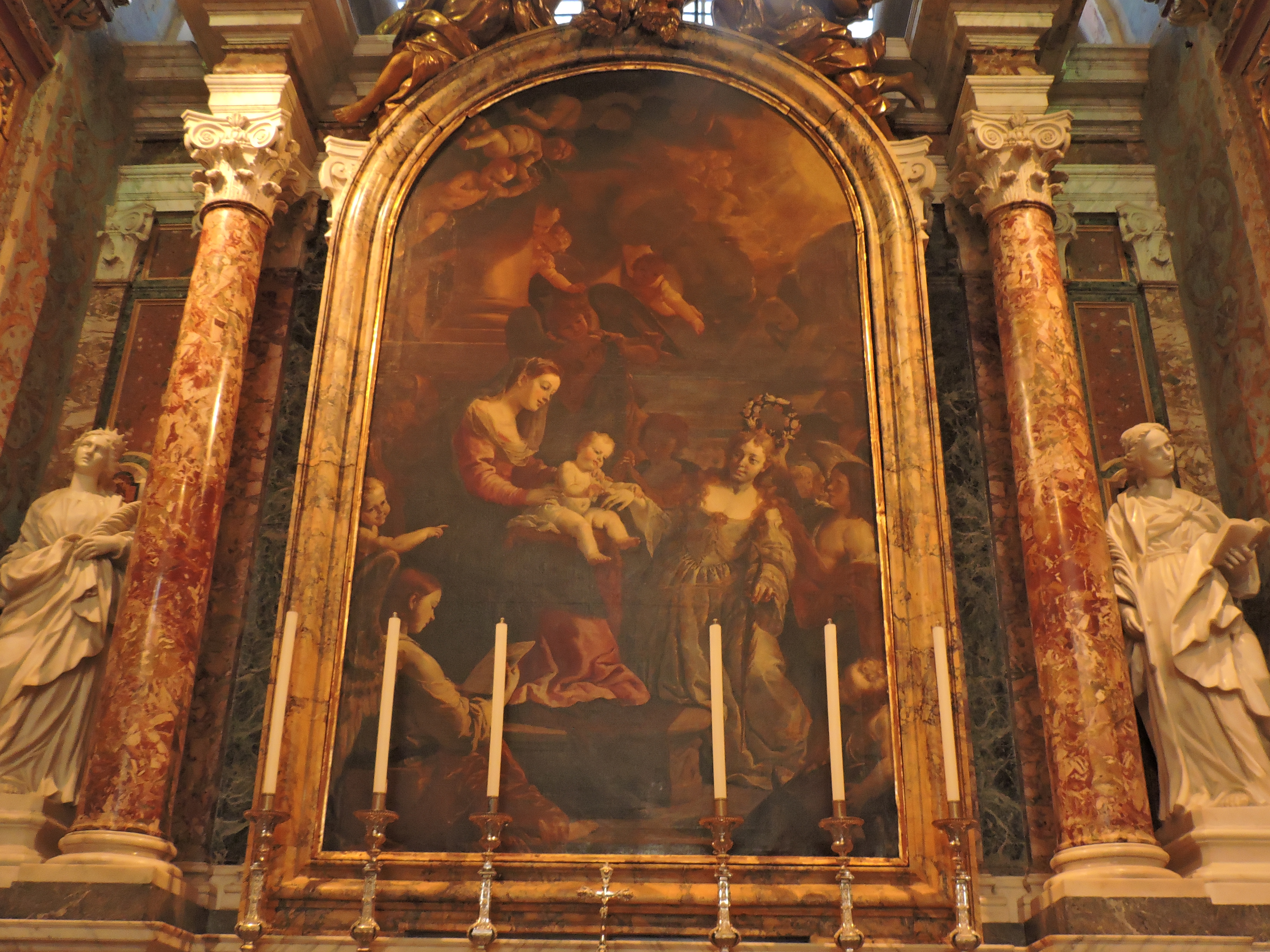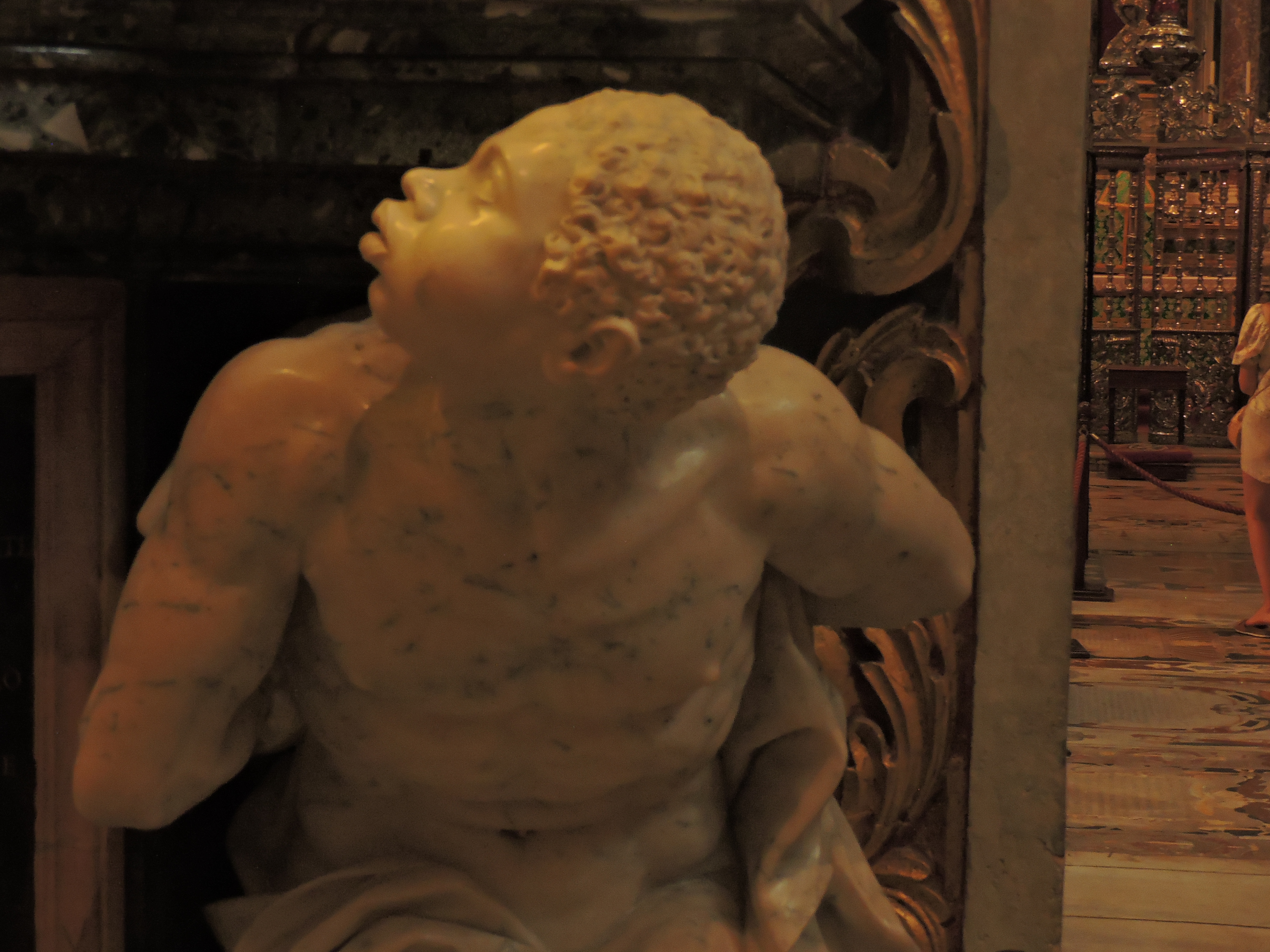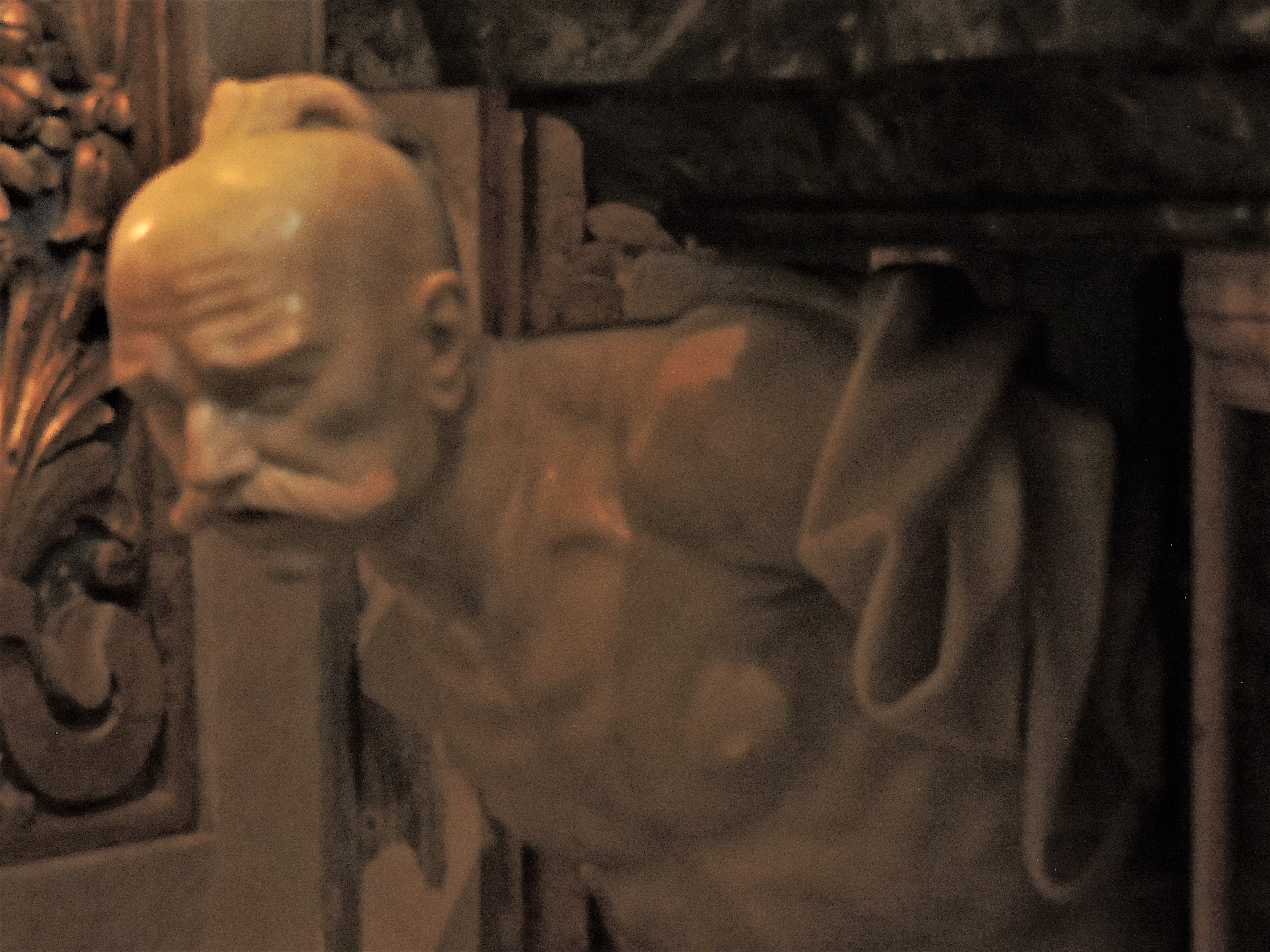 Inside the church I stopped in front of a marble angel that was sitting mindfully in an attempted lotus position as if floating in the air and chose him as my intermediary.