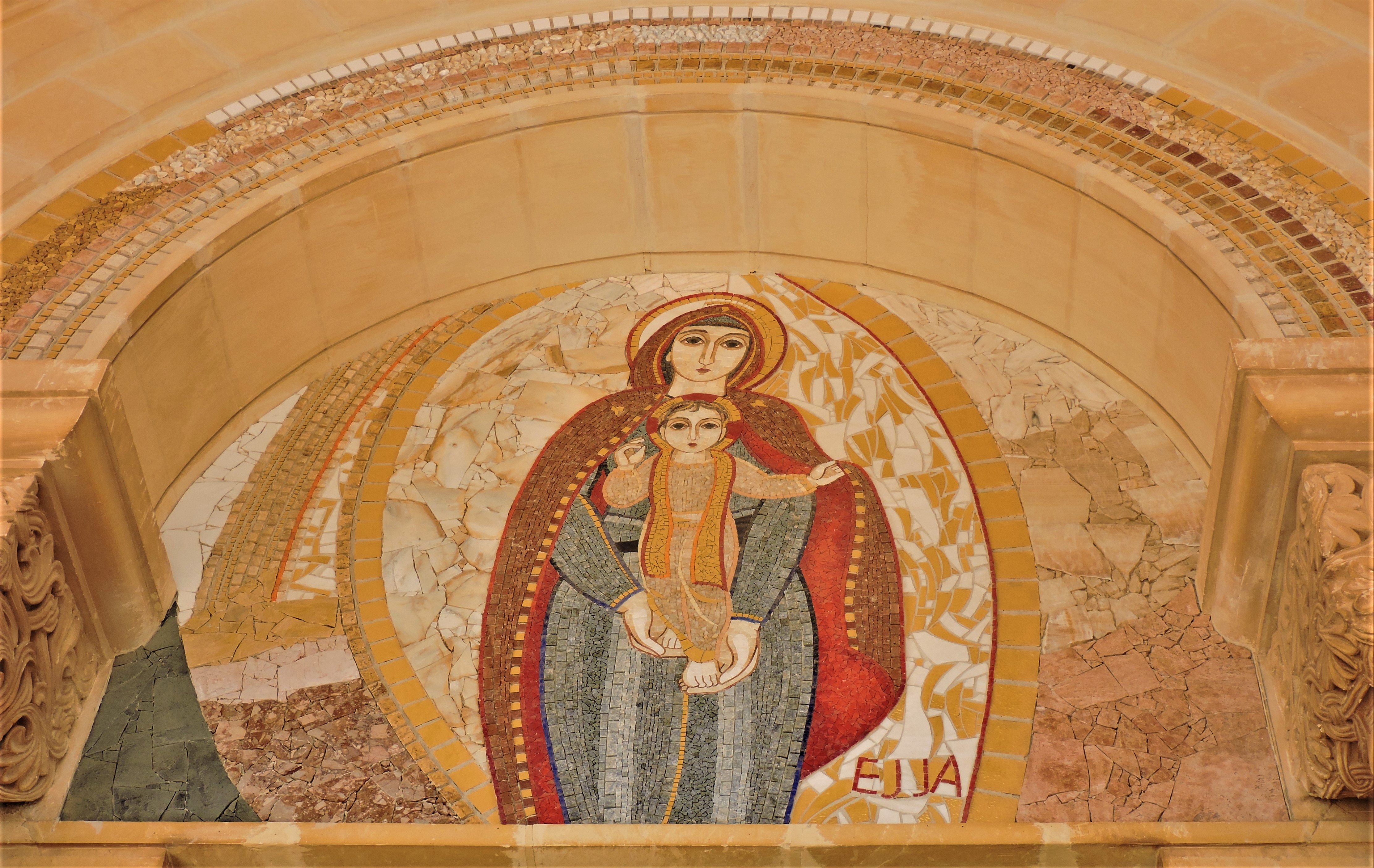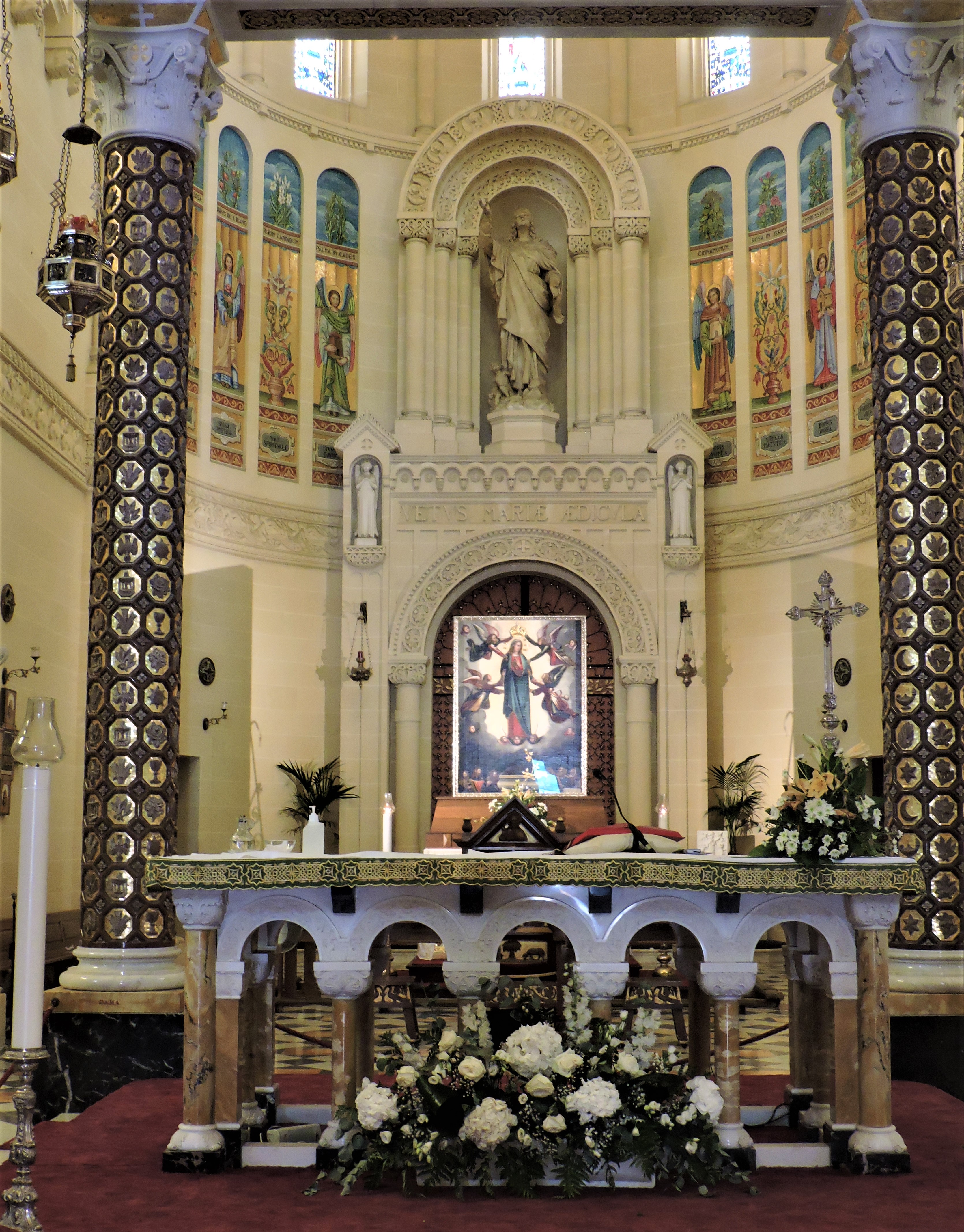 A short lone pilgrimage across the large forecourt to the huge church, quick photos right and left. 1920s Neo-Romanesque! The newness, the clear lines, the unequivocal imagery, they calm your mind, clear your perception, open you up spiritually.