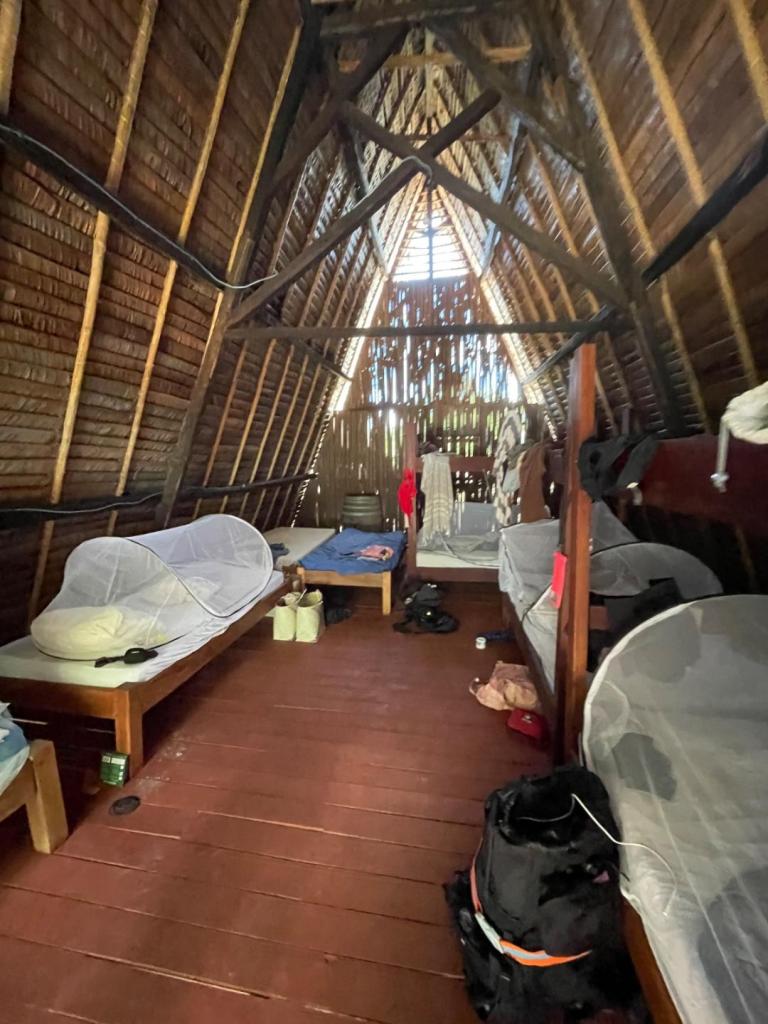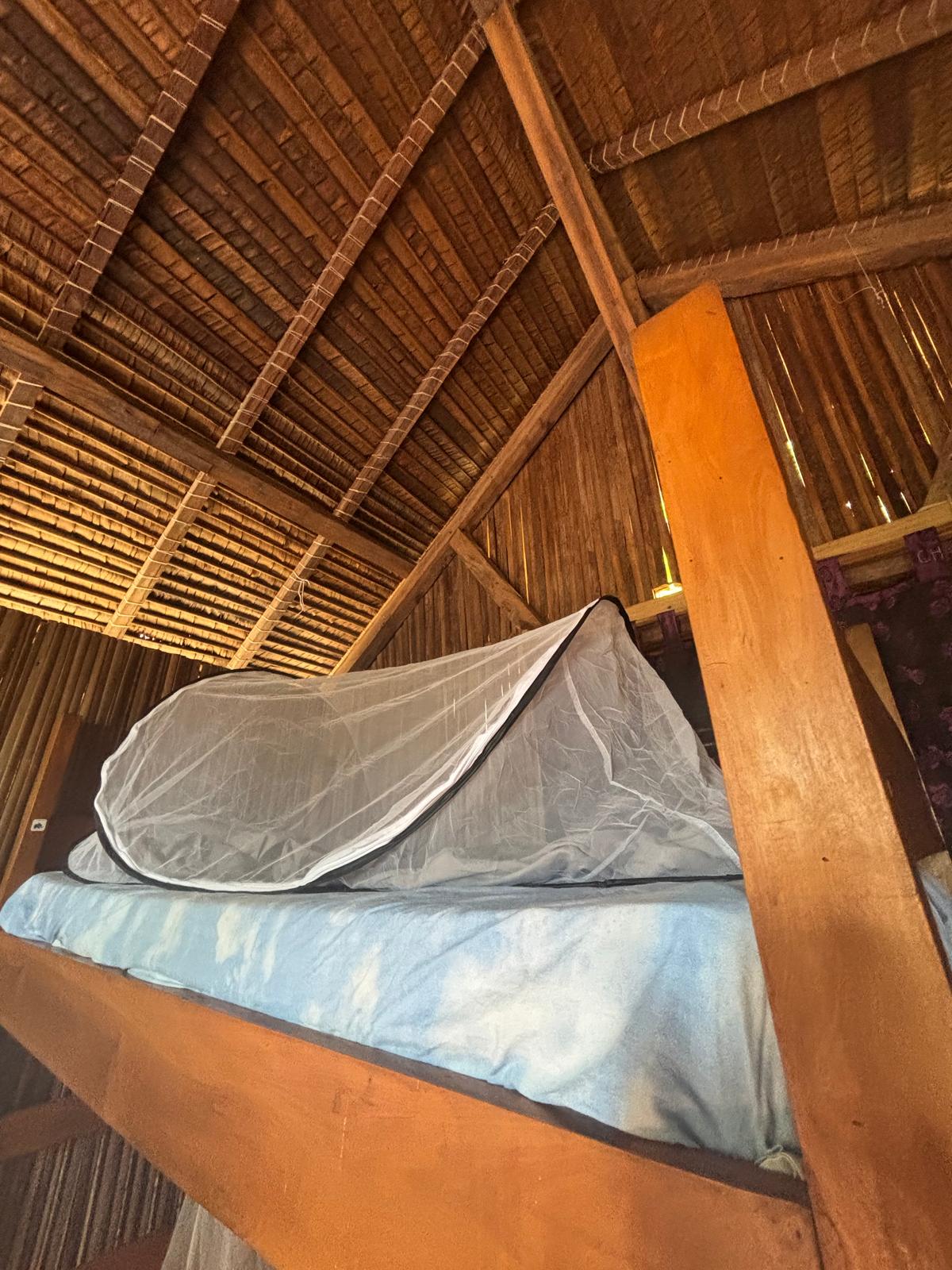 When roughing it becomes cosy normality. Mosquito nets keep the critters at a distance and ensure some privacy. Note: upper bunks should be for the young and sporty only. After five nights I got assigned a near-the-ground bunk.