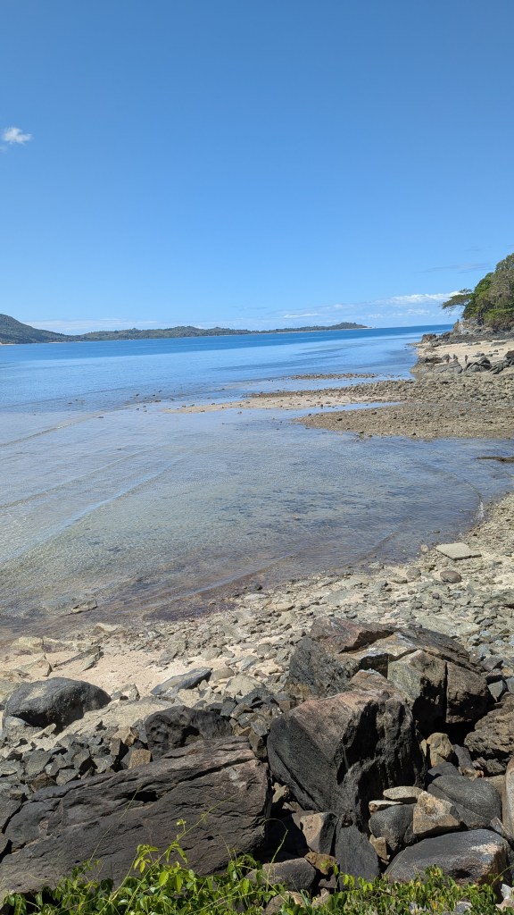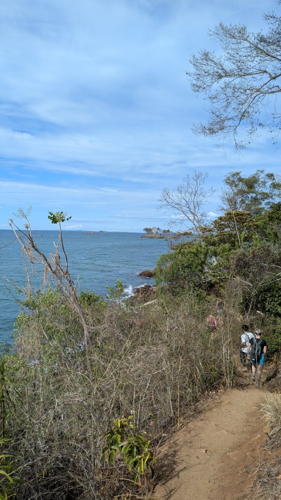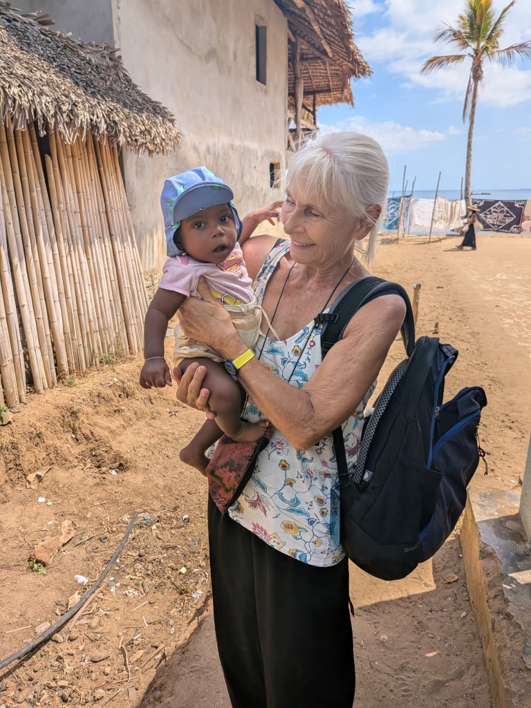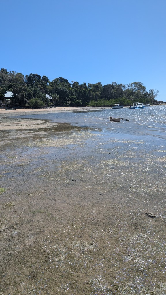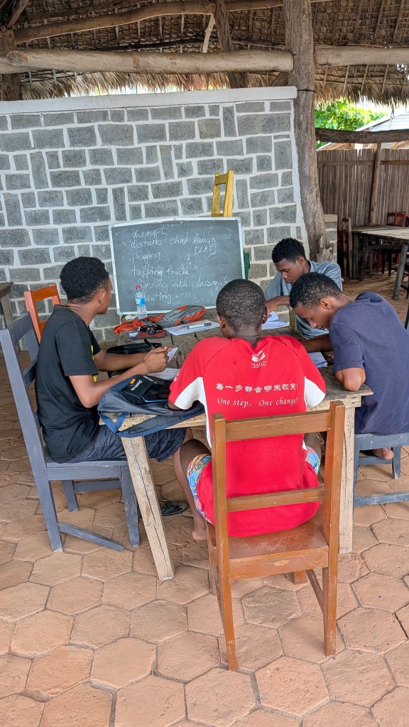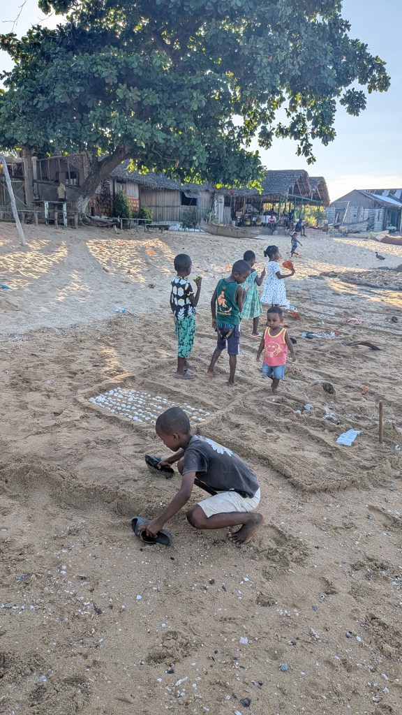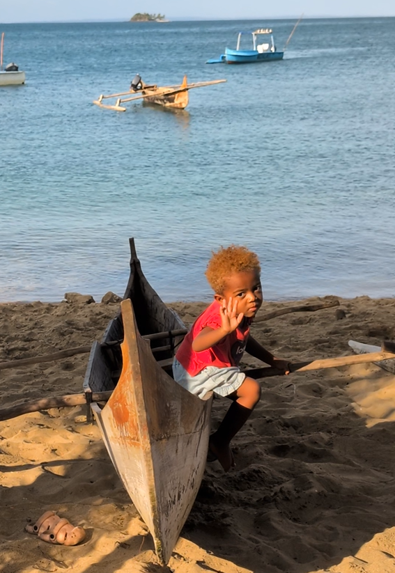 Afternoon lessons: it’s me who has to move, a long and arduous walk from our camp to the village of Ampangorinana, short Ampang. When fuel is available, the organisation takes us there and back by boat. Otherwise WALK! Thank you, my guardian angels Mario and Gabriella! A young chap from the local communitiy and my favourate baby’s young mother watched over me and kept me from falling off cliffs or stumbling up and slipping down gravelly footpaths at high tide. At low tide, I could easily stroll along the beach. Safe, except once, when the tide wasn’t low enough, I hit my head on a thick branch of a tree on the beach and, much to Gabriella’s horror, bounced backward into the surf. Luckily, my cell phone didn’t get wet. No drama really: The 2 km stretch from our camp to Ampang seems to be a challenge only for me, everyone else walks, runs, or jumps effortlessly over the rocks and stones along the coast, even barefoot or in flip-flops … and after sunset! Not me!!!