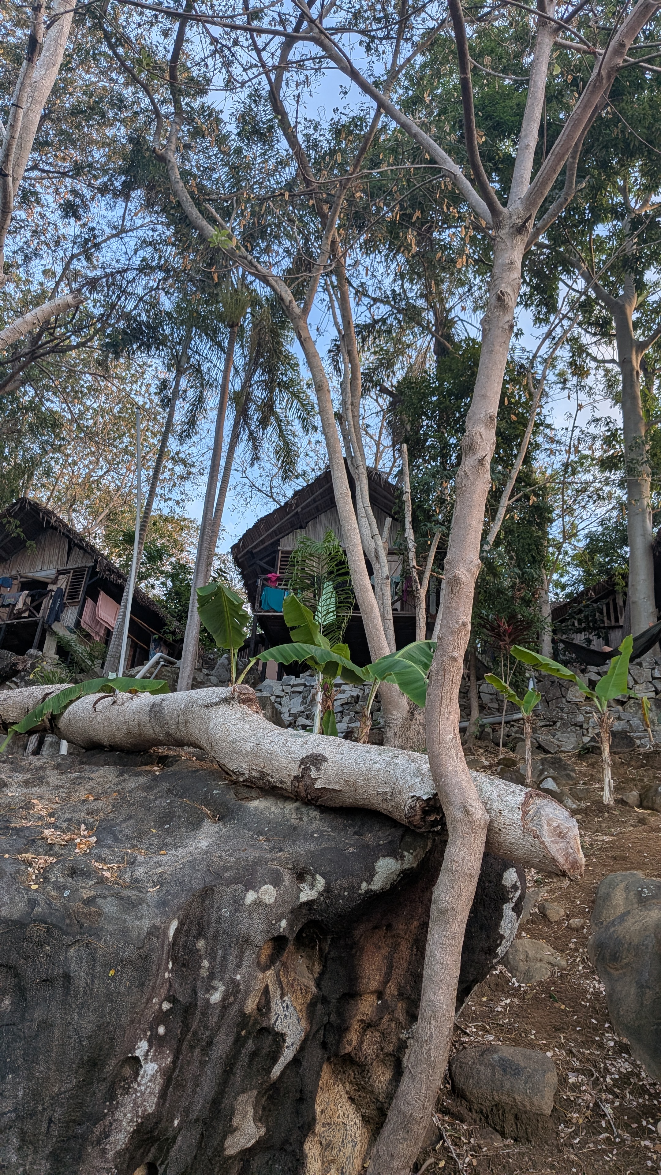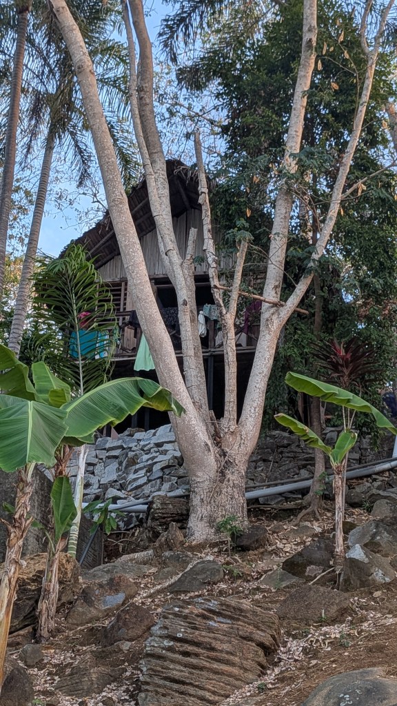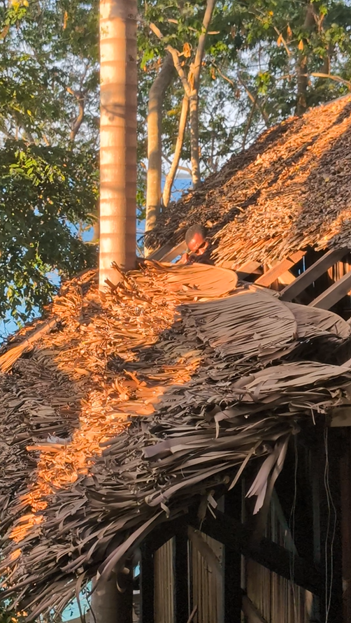 My home is my hut, always open to the occasional faunal intruder. Yes, I was stung in the hip by a huge buzzing insect, yes, I had a poisonous millipede in my hut, and yes, geckos are welcome. From time to time the traditional palm leaf roof needs to be repaired, then it’s totally rainproof. And when it rains, it rains!