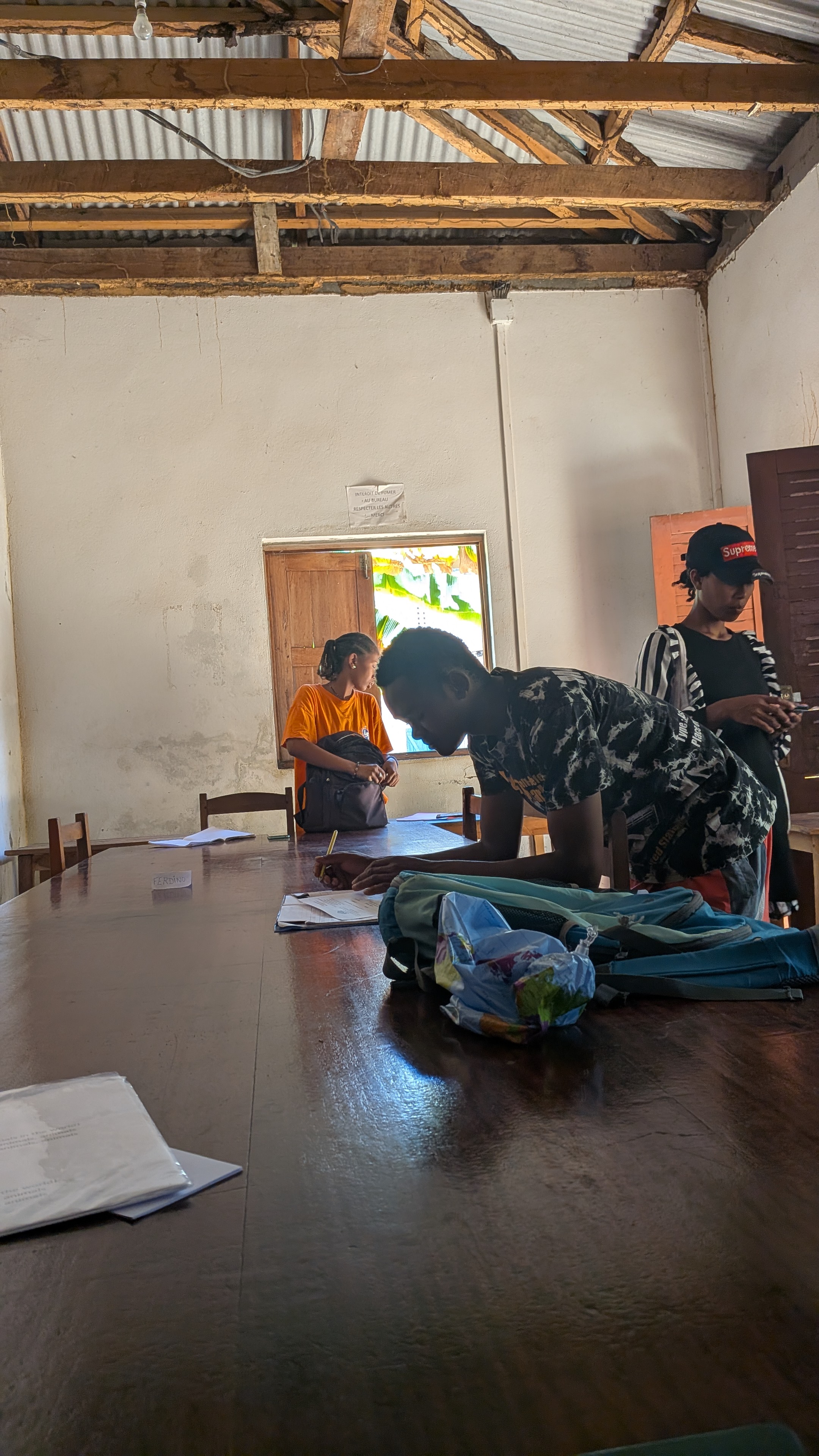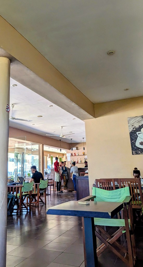 Morning course, 9 to 11, intermediate English, local community. My classroom: last table in dining area. A few young men show up, more and more over the next days, between 17 and 30 years old; motivation: better job possibilities. No girls? Where are the young ladies? Busy with chores?