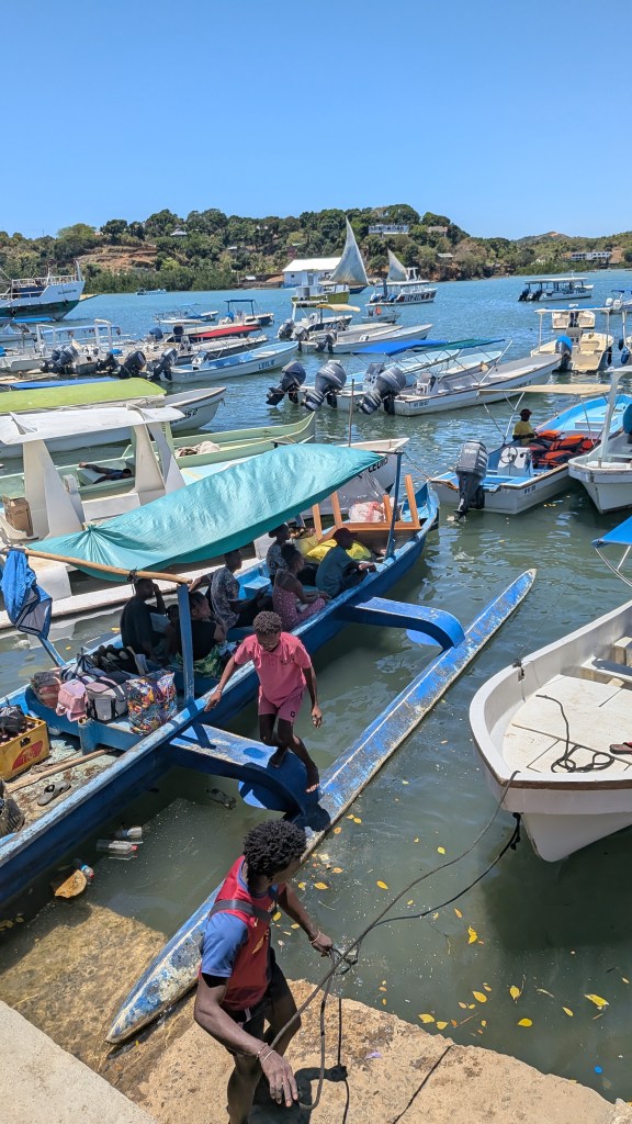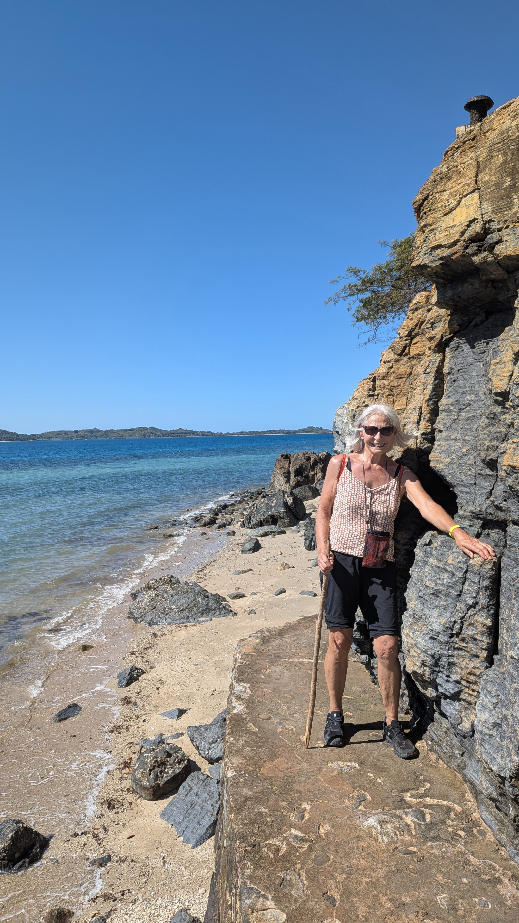 First exercises: 1) boarding the boat without falling into the murky port water, 2) getting off the rocking boat 3) mastering tracks and trails: steep, stony, sandy, and craggy stairs, trip-hazard up, slip and stumble down. Passed the test, even in flip-flops, never refused a helping hand though but … no bruise, no blood, no broken bone.